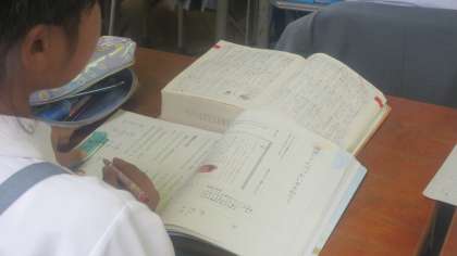 3年生が国語辞典の使い方について学習していました。国語辞典を使うと、言葉の意味や漢字を使った書き表し方、言葉の使い方などを調べることができます。子どもたちは五十音順に並んでいることを教えてもらって、実際に調べる活動に取り組んでいました。先生も上手に使えているか見回っていました。最近なんでもネットや電子辞書などを使うことが多くなっているので、こういった昔ながらの地道な活動を見ると、なんだかほっとした気分になりますね。