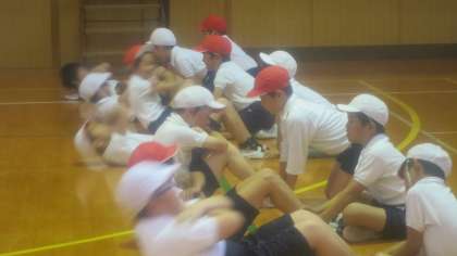 4年生が「上体起こし」の記録をはかっていました。
