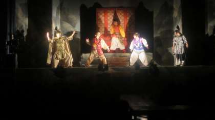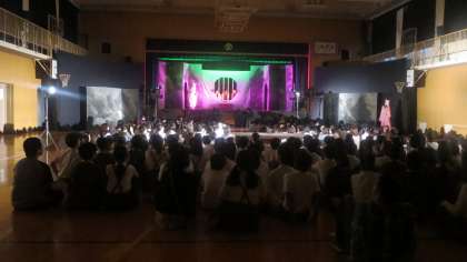 本日は劇鑑賞会が午前中にありました。劇団に来ていただいて、目の前で迫力ある演技を見せていただきました。演目は「西遊記」…、おなじみの三蔵法師や孫悟空、猪八戒や沙悟浄が登場します。今風にイリュージョン&アクションで構成されているということなので、子どもたちもワクワクドキドキ…。始まる前からソワソワザワザワ…。子どもたちもとても楽しみにしていました。