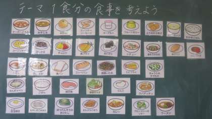 6年生に栄養指導を行いました。他校から栄養教諭に来てもらって授業を受けました。今日のテーマは「1食分の食事を考えよう」です。黒板においしそうなメニューのカードがたくさん貼られます。子どもたちはその中から選んで1食分のメニューを考えるわけなのですが・・・。好きなものだけを選ぶ子も多く、あとで先生に改善命令を言いわたされていました(*´Д`)