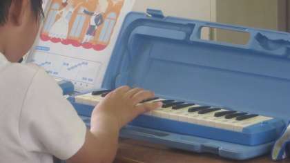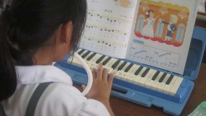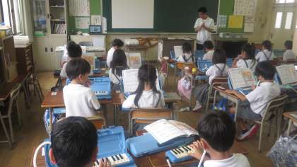 2年生の子どもたちがリズムよくけんばんハーモニカで「かっこう」を演奏していました。