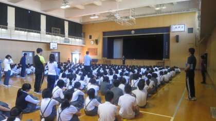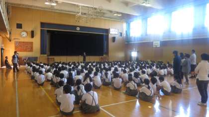 児童朝会がありました。すがすがしい朝です。校長先生からはホタルのお話がありました。「今、3年生がホタルの幼虫を育てていますが、もうすぐ成虫になって飛び回る季節になってきます。ホタルが光をともしながら飛びはじめると夏がやってきたなと感じます。昔はホタルを集めてホタルの光で勉強していたそうです。それくらいみなさんも勉強を頑張れたらいいですね。また季節の変わり目なので、体調を崩さないようにしてくださいね。」というお話でした。