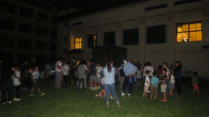 体育館の壁をスクリーンにしてホタルについてのDVDを見たり、たまごや幼虫、さなぎの観察をしたりしました。そしていよいよクライマックス、お楽しみのホタルを放すときがきました。黒い網でおおわれたかやの中にホタルが舞っていきます。ほんのりとやさしい光、緑っぽい光を放ちながら飛んでいるホタルのようすを観察することができました。歓声が起こり、いつまでも眺めている子が何人もいました。本当によい体験になりました。西岡様をはじめ、お手伝いいただいた方々、本当にありがとうございました。