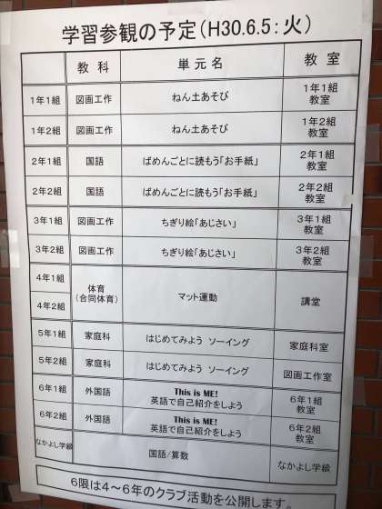 本日は学習参観があります。1時50分から5時間目の学習を見ていただきます。どの学年も1.2組同じ教科の学習をします。どの学年も特徴的な学習をご覧いただけると思います。本年度初めての試みで6時間目のクラブ活動も参観していただけるように設定いたしました。いつもの教室と少し違った4.5.6年生の活動もぜひご覧ください。