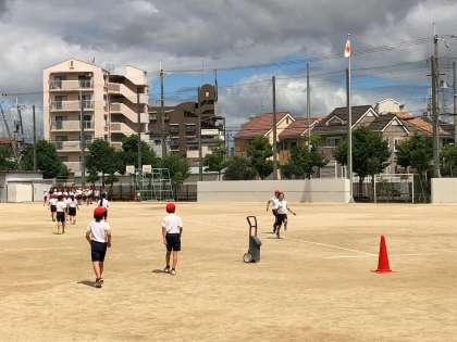 2時間目は、4年生が50メートル走の練習をしていました。ゲームで体をほぐしてから、練習開始。効率よくみんなが体を動かしています。さてその後、いよいよタイムをはかります。