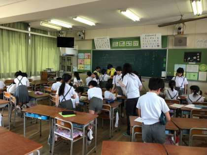 来週の土曜授業で実施する大道南フェスティバルの準備が始まりました。遊びのルールを決めたり、係の分担をしたりしています。ポスターも描いて、たくさんの人に来てもらえるようアピールする準備もしています。1年生から6年生まで、みんなで協力して、楽しい会になるようにがんばっています。