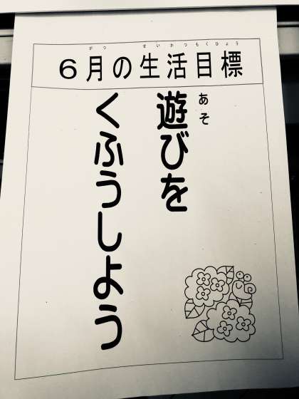 6月の生活目標は『遊びを工夫しよう』です。今日は朝から雨なので、教室て静かに過ごすように、遊びを工夫しています。今日予定していた5年生の田植えと2年生の街探検は月曜日に延期になりました。