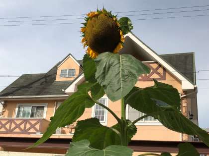 玄関の巨大なひまわりはそろそろ花が終わりかけています。種がたくさんとれそうですよね。