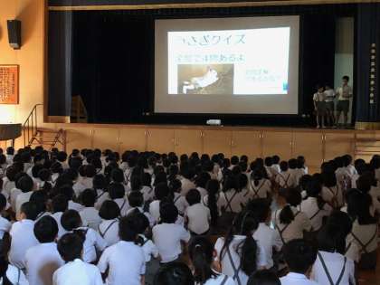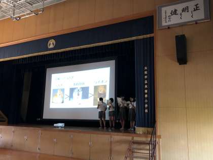 木曜日の児童集会では、集会委員会のゲームの他に、各委員会からの発表をしています。今朝は、飼育委員会から、ウサギクイズやみんなに守ってほしいことなどの発表がありました。飼育委員会の子どもたちは毎日ウサギを大事に世話してくれています。