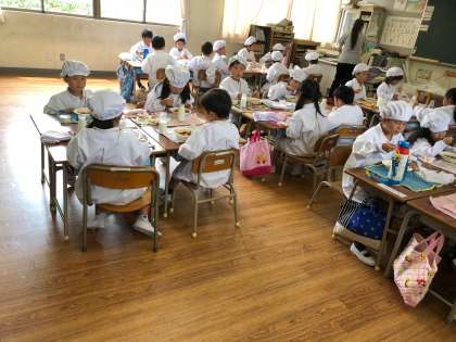 今日のカレーは、1年生にとって少し辛いかなと思って見に行くとみんなご機嫌で食べています。もりもり食べて元気な子どもたちです。