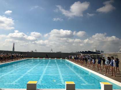 今日からプール開放が始まりました。たくさんの子どもたちが受け付けをして、準備運動をしていました。受け付けは毎日、PTAの方が担当していただいています。暑いですが、子どもたちは元気にプール水泳に親しんでいます。