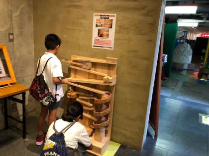 木のおもちゃのコーナーでは、目をキラキラ輝かせて夢中で遊んでいる子どもたちです。
