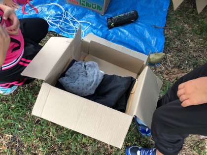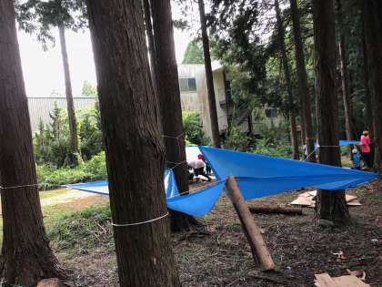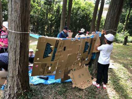 だんだん秘密基地ができてきました。下の写真はパーカー入れ、靴箱もあるようです。子どもたちの工夫が光ります。