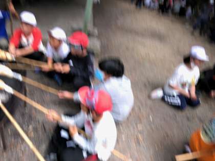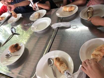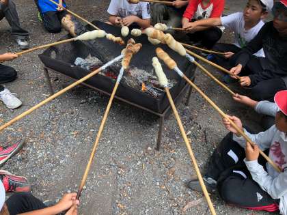 カレーができてきて、次は棒パンです。パンの生地を棒に巻きつけ、焼いて食べます。カレーとの相性も抜群です。