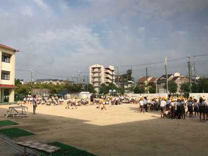 今朝は児童集会で、全校で運動場の石拾いをしました。みんなで運動会を安全にできるように、進んで学校をきれいにしてくれています。