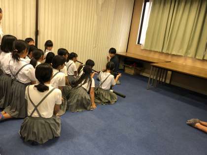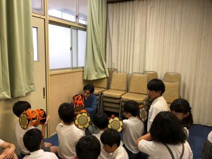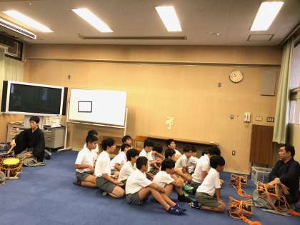 6年生は芸術家の派遣事業で、山本能楽堂の方にお越しいただき、能の楽器体験をしました。お能の歴史や、能の楽器の特徴、演奏方法などを実際に声を出したり、楽器を使って体験しました。小鼓、大鼓、太鼓、能管などを使って順番に演奏をさせていただきました。みんな目を輝かせて、時にはユーモアたっぷりの説明に聞き入っていました。やっぱり本物に触れることは大事だと痛感しました。