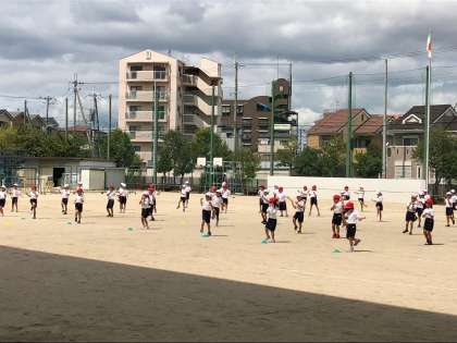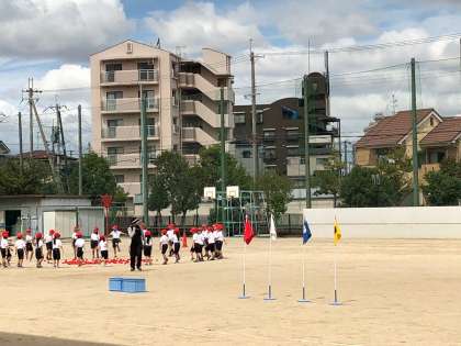 一年生は初めての運動会です。玉入れはダンス付き。とてもかわいい振り付けです。2年生はきれいに並んで踊っていました。みんながんばっています。