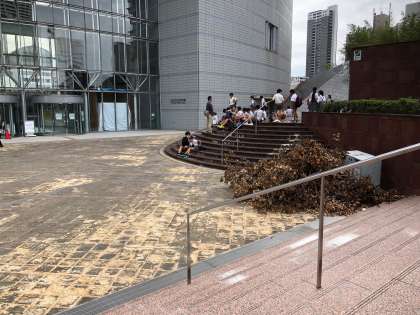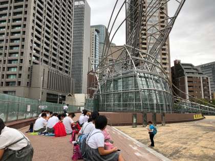 5年生は、午前中の鑑賞の後、科学館の前の広場で昼食タイムです。お家の方に作っていただいたお弁当をおいしく食べることができました。午後は交代して、1組はプーシキン展、2組は鑑賞ノートを使って見学します。