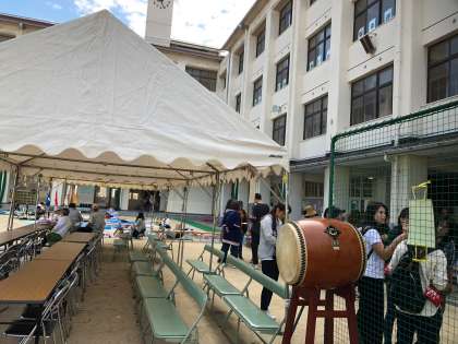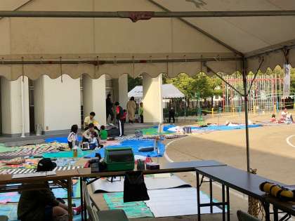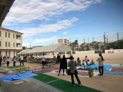 8時開門に合わせてたくさんの保護者の方々が来られ、敷物を敷いておられました。PTAの方々も準備などでお越しいただきました。