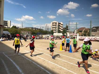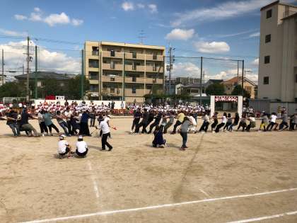 今年から選抜リレーがプログラムに追加しました。力強い高学年のリレーは迫力がありました。PTA・来賓の綱引きはPTA会長さんのチームの圧勝でした。