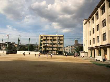運動会の準備などでクラブ活動がしばらくなかったので、久しぶりの活動です。運動場で球技をするのにも適した気候です。芝生広場では、科学クラブの人たちが紙コップで作ったUFO飛ばしに挑戦していました。