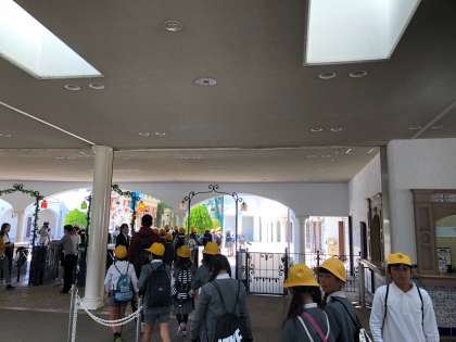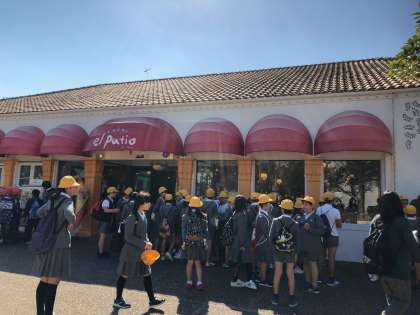バスはほぼ時間通り、スペイン村に到着しました。すぐにレストランに行って、パエリア作り体験です。