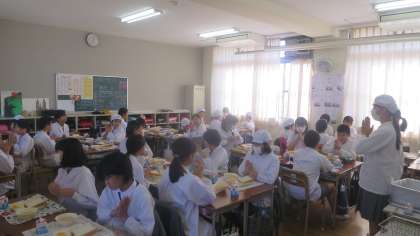 6年生の給食のようすをのぞいてみました。落ち着いておだやかな雰囲気が漂っています。しっかし、みんな大きくなったなー(@_@) この給食じゃ足りないかも・・・。