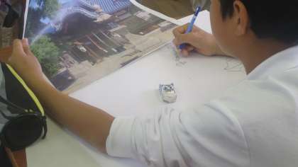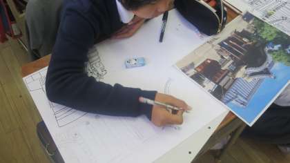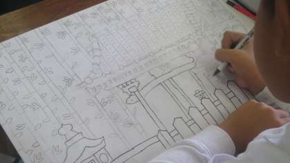 5年生が先日、写生会に行きました。今日はその続きを教室でしていました。その時に撮った写真を参考にしながら細かな部分にまで気を配りながら仕上げていきます。さあ、作品展までに間に合うかな。がんばってね。