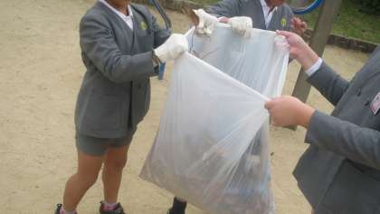 今日は全校児童による「クリーン大道南」を行いました。全学年がそれぞれ地域の公園や学校のまわりの歩道などに出向いて、ごみひろいや落ち葉ひろいをしました。自分たちが普段生活している地域や遊んでいる公園をきれいにしようとする取り組みです。いつも公園などをきれいに掃除してくれている人たちに感謝して、これからはごみをすてたり、物を壊したりしないという指導も重ねて行いました。子どもたちに自分たちの地域をきれいに、そして大切にする気持ちがもっと大きく育ってほしいと思います。