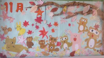 子どもたちが作ったかわいらしい掲示物が秋の深まりを感じさせてくれます。