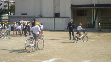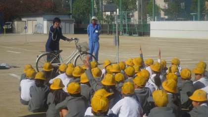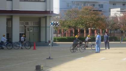 3時間目は4年生です。4年生は自転車の乗り方や点検の仕方、道路での走り方や交通ルールなどについて学習しました。交通事故の中で自転車事故の占める割合は非常に高くなっています。無理な横断やとび出し、二人乗り、スマホなど…、ちょっとした不注意や油断が思わぬ事故を招いてしまいます。また自分が加害者になってしまうこともあるかもしれません。子どもたちにはしっかりと安全に対する意識をもって自転車に乗ってほしいと思います。