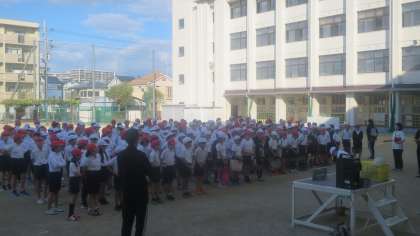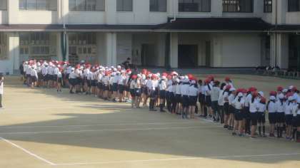 午後より6年生の子どもたちが大桐小学校の6年生とドッジボールを通してスポーツ交流会を行いました。来年、大桐中学校で多くの子たちが同じ中学1年生としてスタートします。そのためにも今から顔見知りになっておいて、スムーズに中学校生活が始められるようにするのがねらいです。子どもたちは今日の日を楽しみにしていたみたいで、お互いに積極的にあいさつをしていました。