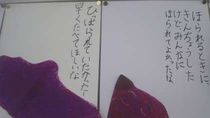 「ほられるときにきんちょうしたけど、みんなにほられてよかったな」