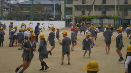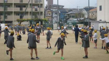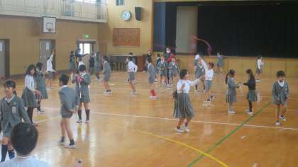 2時間目と3時間目の間の休み時間は15分です。少し長めなので、子どもたちもたくさん運動場に出てきました。テンポのいい音楽もかかっています。子どもたちはリズムに合わせて跳んでいました。曜日・学年ごとに体育館も開放しています。でも、このあと雨が降り出して、みんな残念そうに教室に引き上げていきました。(;´∀`)