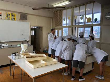 5年生のお餅つきもいよいよ佳境に入ってきました。黒糖ときな粉がまぶしてあるお餅はとてもおいしそうです!みんな食べるのを楽しみにしています。
