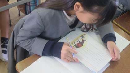 4年生が国語の授業で「世界一美しい村」という物語を学習していました。アフガニスタンのパグマンという美しい村について描かれていて、でもその村が戦争によってなくなってしまうという悲しいお話でした。子どもたちは音読しながら内容について考えていきます。「これって本当の話なんかなぁ。」「こんな美しい村なのに。」…。登場人物の気持ちになって「かわいそうだなぁ。」…。他にもいろいろな感想をもったようでした。