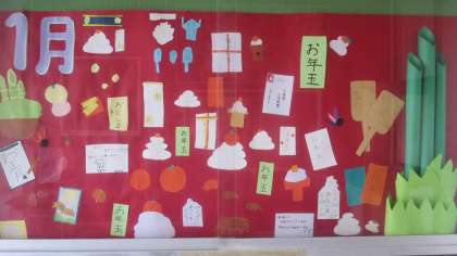 玄関掲示が1月バージョンに貼り替わっていました。「お年玉」「おもち」「みかん」が多かったですね。子どもたちにとってお正月と言えば、この3つをイメージするようのでしょうか。いつの時代も子どもたちにとってお年玉は楽しみなものなのですね…、当たり前か。せっかくいただいたお年玉はぜひ大切に使ってほしいと思います。