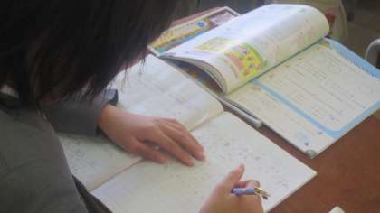 「5人ずつシートにすわります。□枚で30人すわることができます。」といったふうにつくります。□×5=30というパターンもありました。はじめわからなくてキョトンとしていた子どもたち先生の熱心な指導によって、どんどんとノートに書き始めました。発表も自信をもって答える子が多かったです。