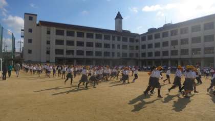 今日より耐寒かけあしが始まりました。2時間目と3時間目の間の休み時間に全校児童が運動場に出てきて、みんなで一斉に走ります。はじめは学級ごとにならんで走りますが、途中から自分のペースで走ります。音楽に合わせて楽しみながら走れるようにしています。今日は初日ですが、1月30日(水)の淀川河川敷で行われる耐寒ミニマラソン大会に向けて練習を重ねていきます。体育の授業でも取り組みます。しっかりと健康な体づくりと体力づくりに励んでほしいと思います。