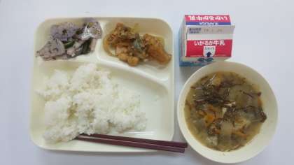 今日の給食のメニューは、さけの南蛮漬け、もずくのみそ汁、れんこんの赤じそ和え、牛乳、ごはん、でした。さけの南蛮漬けはでんぷんをまぶしてサクッと揚げられたさけが酢や砂糖、しょうゆでさっぱりとした味にととのえられていてとてもおいしかったです。もずくのみそ汁はしっかりとだしがとられていて、具材も細かく刻まれていました。もずくも入っていて栄養満点でした。れんこんの赤じそ和えは赤じその風味が効いていて、れんこんのしゃっきりとした食感が楽しめました。