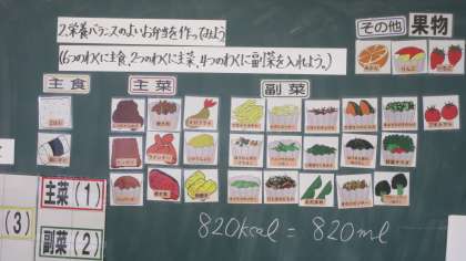 6年生に栄養指導が行われました。他校から栄養教諭にきてもらい、授業をしてもらいました。テーマは「バランスのよいお弁当を考えよう」です。6年生は4月から中学生になります。心身ともに健康な体をつくるためには食事は本当に大切ですね。ましてや中学生ともなれば、自分で栄養バランスを考えて食事をすることはとても大事です。好きなものばかりではいけません。先生が教えてくれました。主食は炭水化物中心、主菜はたんぱく質中心、副菜は無機質やビタミン中心で、割合は主食が3、主菜が1副菜が2だそうです。子どもたちは習ったことを頭に入れながら、自分ならこんなお弁当をつくるよとプリントに書き込んでいました。