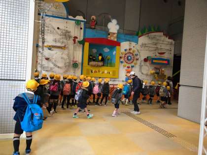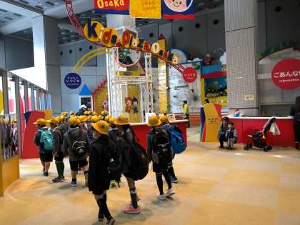 2年生は地下鉄に乗り、キッズプラザに到着しました。ボールがくるくる回って落ちてきたり、カラスが動く仕組みがおもしろくて、歓声を上げていました。いよいよ見学の開始です。