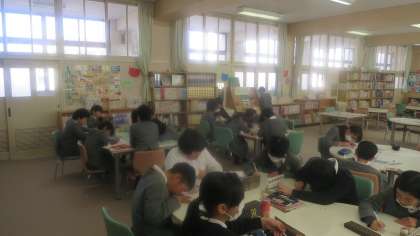 今日は火曜日、クラブ活動の日です。運動系、文科系クラブがありますが、今日は「まんがクラブ」におじゃましました。まんがクラブではそれぞれが好きな絵やキャラクターを描いたり、グループで協力して一つの作品を作ったりしているそうです。お互いに教え合ったり鑑賞し合ったりしながら楽しく活動しているとのことでした。共通の趣味があると会話もはずみますね。