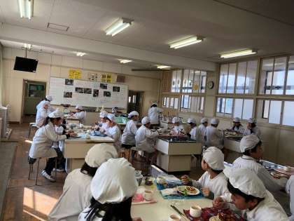 5年生は調理実習で、ホットケーキを作って、紅茶を入れていました。家庭の団らんの時間を大切にすること、みんなで手作りすろたのしさなどを学んでいます。