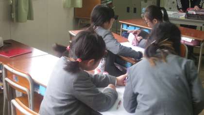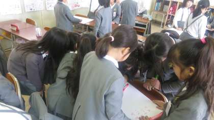3年生が何やら楽しそうに活動していました。黒板を見てみると「お楽しみ会」について話し合ったあとが・・・。ブラックボックス、手芸、ダンス、マジック、バトン、お笑い、クイズ、げき…の文字が、そしてその下にメンバーの名前が書いてありました。3年生の子どもたちなりに一生懸命に考えて、楽しみながら相談したり準備をしたりしているようすがとても微笑ましく思いました。