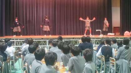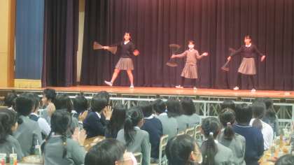 午後からは6年生が茶話会を開きました。ともに過ごした仲間たちと笑顔で語らいながら、子どもたちと担任だけで楽しいひとときを過ごしました。講堂にテーブルをならべてジュースとおやつも用意しました。舞台ではグループごとにそれぞれの出し物がくり広げられていきます。笑いが起こり拍手が起こります。子どもたちもお互いに気をゆるして自然と和やかな穏やかな雰囲気が生まれていました。