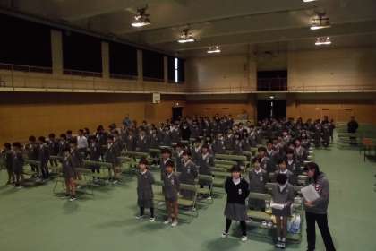 あさっての卒業式に向けて、最後の練習が終わりました。今日は細かな部分の確認をしたり歌を歌ったりするだけで、最終段階の調整のみで終わりました。今まで練習しきたことを卒業式本番でしっかり表現してほしいと思います。特に6年生は、今日を入れてあと3日です。一人一人がいろいろなことを思い浮かべながら過ごしていることと思います。立派な卒業式になることを祈っています。