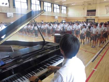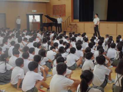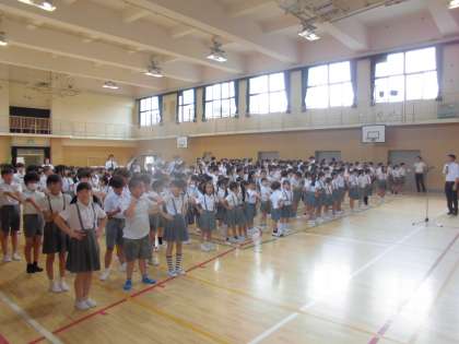 1時間目のはじめに講堂で2学期の終業式を行いました。みんなで一緒に始業式を迎えられたことを喜び合いました。私からは「一人一人が一生懸命にしっかりと自分の力を出し切って、先生や友だちとも協力し合って、何事も最後までやり遂げていきましょう。」「そしてもっとみんなで成長して、実りの多い秋にしていきましょう。」と話しました。その後、生活指導の先生から2学期の生活についての話を聞き、最後にみんなで元気よく校歌を1番だけ歌いました。子どもたちの声が一斉に講堂に響き渡ると、一気に学校が息を吹き返したような感じになりました。やっぱり学校には子どもたちがいないといけませんね。