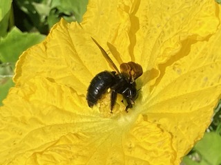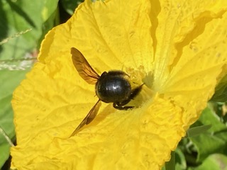 学習園を歩いているとブーンブーンと騒がしい羽の音がします。よく見てみるとハチ?たぶんクマバチの一種だと思うのですが、花の蜜(みつ)を吸っていました。花から花へと次々に飛び回って順番に蜜を吸っていきます。全部で5匹いました。どの子もなかなか落ち着きがなくてすぐに飛び立ってしまうので上手くシャッターが切れません。クマバチは温厚な性格なので滅多に刺さないらしいのですが気をつけないといけませんね。