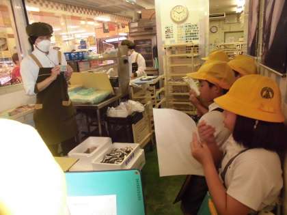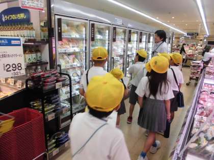 3年生の子どもたちが社会見学で「ライフ豊里店」に行ってきました。いつも訪れているスーパーですが、社会見学で行くとまた違った雰囲気で新鮮な気持ちになりました。たくさんの品物が売っているのでキョロキョロしてしまいます。バックヤードにも入れてもらいました。野菜や魚を切ったり揚げ物を揚げたり、お惣菜を作ったりしているところも見学させてもらいました。冷凍保管庫の中はー15度で凍えました。その他にも季節によって商品を陳列する工夫や働く人たちの様子などについても教えてもらいました。子どもたちも気になったことを進んで質問したりしていました。これからの勉強に役立ててほしいと思います。ライフ豊里店の皆様、ありがとうございました。